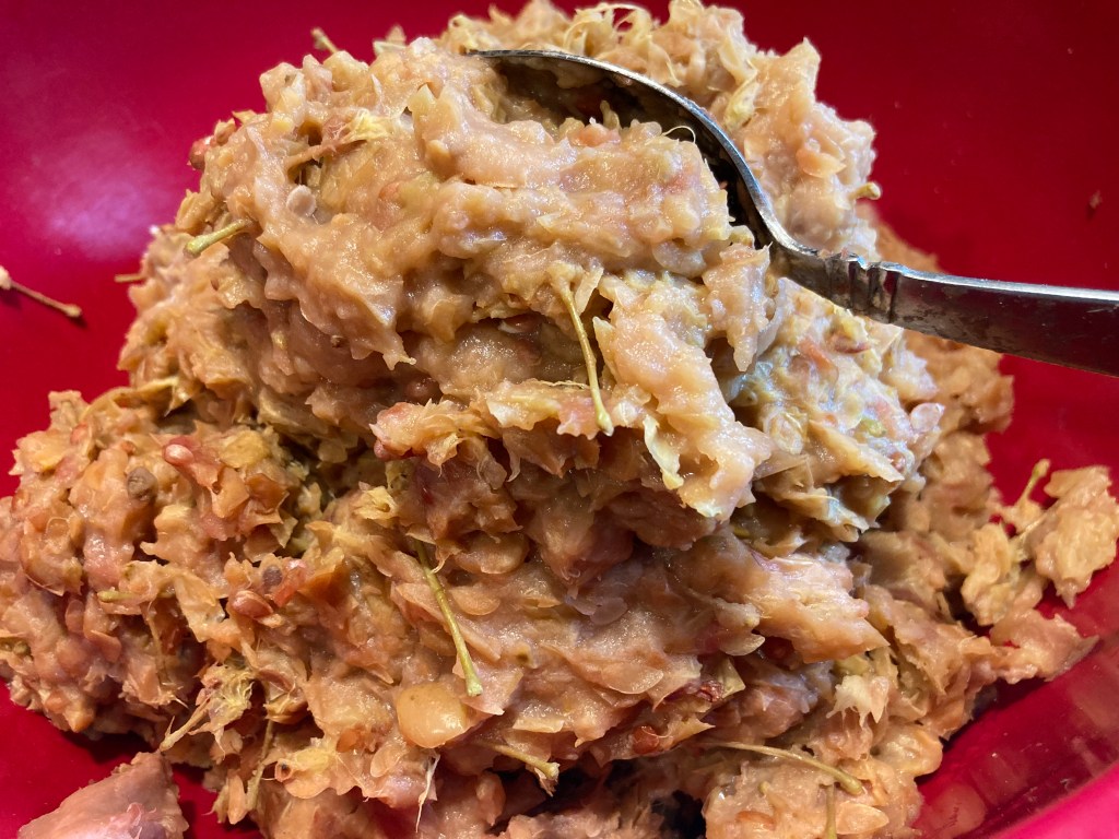 As I wash the dishes and clean up, the bowl of pulp on the counter is the last thing to go. The waste seems to make up at least a third of the crabapples. It is dense and heavy and bitter.